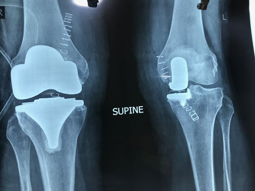 We performed a PCL retaining Total Knee Replacement on the knocked-knee and Partial Knee Replacement on the bow leg to achieve accurate alignment.