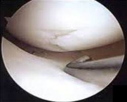 This Arthroscopic Knee Surgery procedure includes removal of loose chondral flaps and smoothing of the Articular Cartilage (chondroplasty). It is utilized for small areas of superficial cartilage damage in patients that experience joint pain and have associated mechanical symptoms. The goal of Arthroscopic Articular Cartilage Surgery is to eliminate catching and locking from these loose pieces of cartilage and to try to prevent propagation of these chondral flaps. The scraping action causes a healing response in the bone. In time new blood vessels enter the area and fill it with scar tissue (Fibrocartilage) that is like Articular Cartilage.
