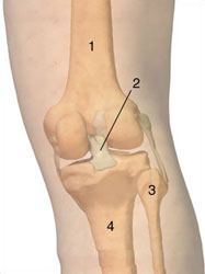 The Posterior Cruciate Ligament (PCL) lies just behind the ACL and similarly connects the Femur and Tibia but runs in a different direction. The PCL is the primary stabilizer of the Knee and the main controller of how far backward the Tibia moves under the Femur. This motion is called Posterior Translation of the Tibia.