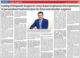 Renowned newspaper mid-day features Dr. Amyn Rajani, an Orthopaedic surgeon in Mumbai, discussing personalized treatment in knee and shoulder surgeries. He highlights the importance of preserving natural anatomy in partial knee replacements and the benefits of reverse shoulder replacements for…